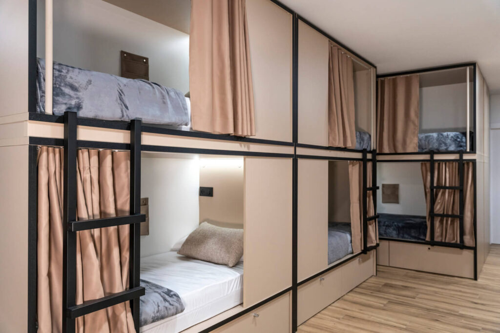 Cada cama incluye cortina de intimidad, luz de cortesía, enchufe individual y un bolsillo portaobjetos para el teléfono móvil, ofreciendo mayor privacidad y comodidad durante la estancia.